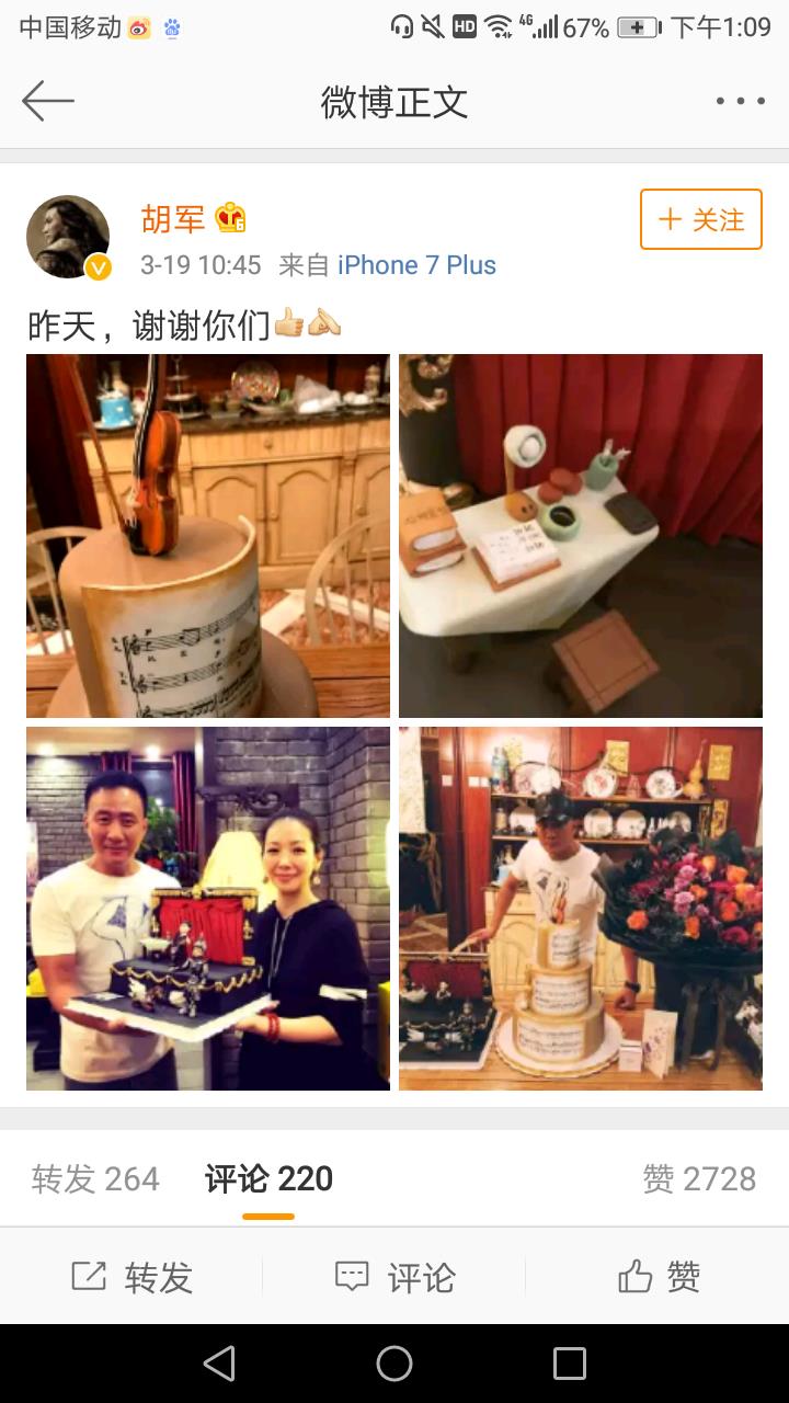 卢芳晒为老公胡军的庆生照,胡军甜蜜回应!一家人好幸福呀!