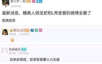 网友爆料称鸽宝把和L哥秀恩爱的微博全部删除了,只留下和一些与朋友以及父母的互动。
