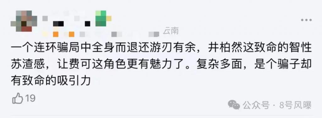 还有网友表示,连看三集不得不说井柏然这个骗子演得相当自然,他的脸自带一种诚恳感,太容易获得别人的信任了。还有网友在弹幕中表示,被这样的高级骗子骗谁能不迷糊?
