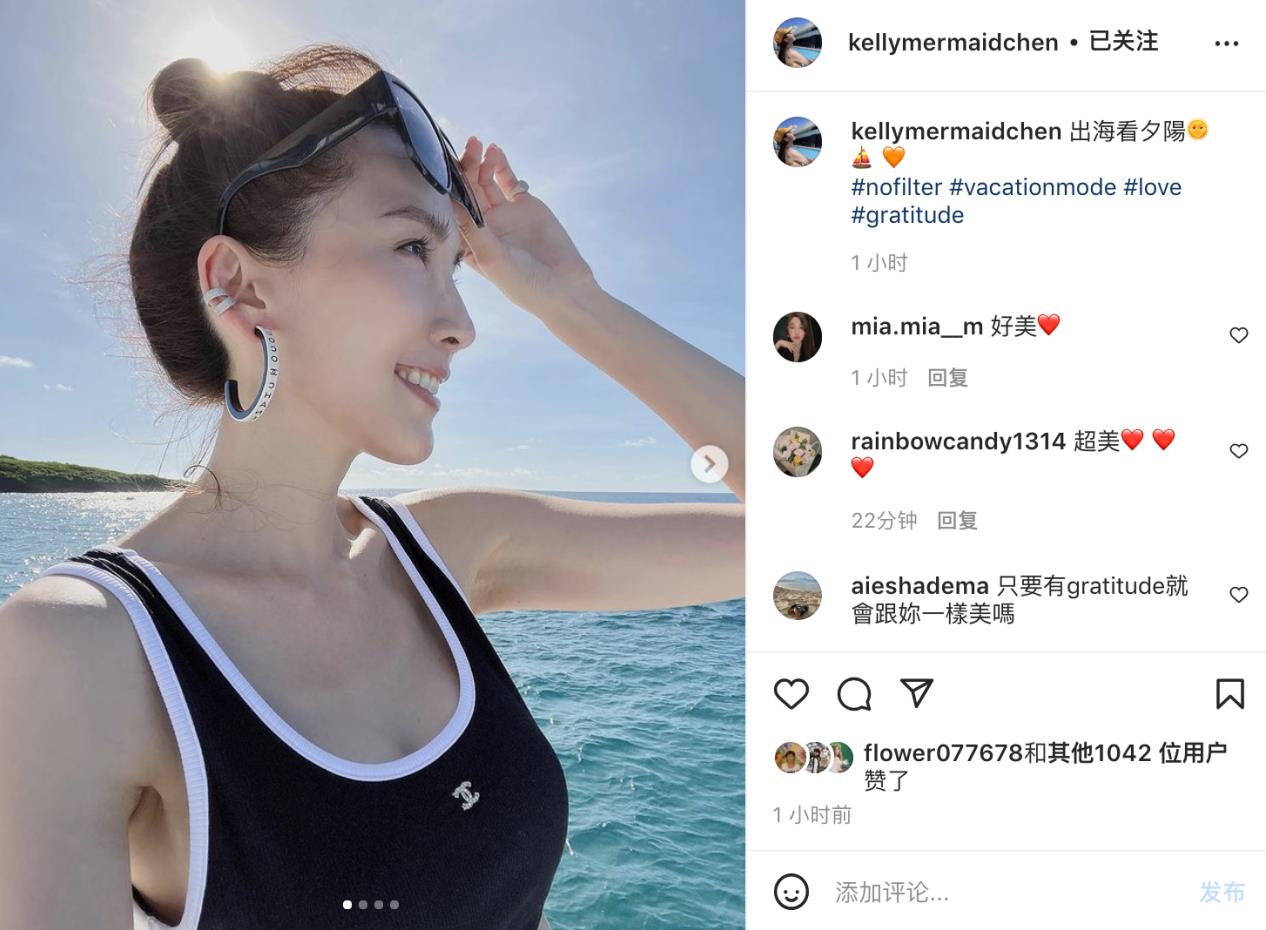 近日,林志颖的老婆陈若仪在社交平台上晒出一组照片,并配文称:“出海看夕阳。”此前她就和老公陪孩子们在海边度假,难得孩子们都放了暑假,一家人愉快地度过这个暑假,而她这次虽然没有晒出老公和孩子的照片,但晒的全是自己的美照,引来无数粉丝的赞美和围观。