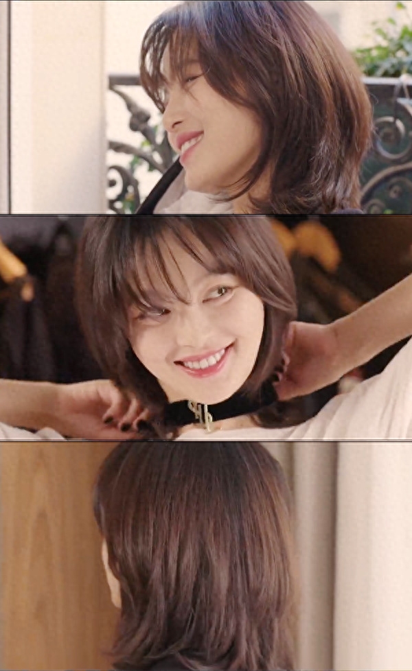 而且及肩的头发长度刚刚好,有刘海和碎发来修饰脸型,不论是披发或者是扎起来都会很好看。