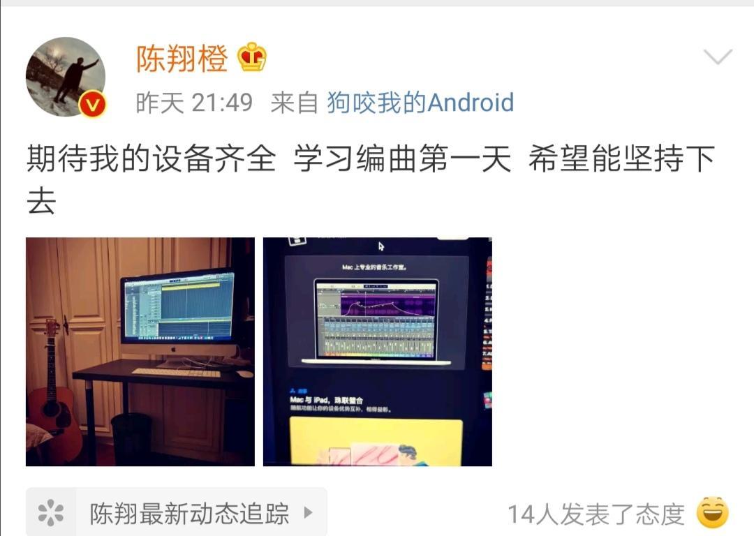 而陈翔也在不断提高自己在音乐方面的专业能力,就在昨天,陈翔还发微博表示自己正在学习编曲。而对于这段疑似新恋情的绯闻,陈翔本人还未作出回应。最后祝福陈翔和毛晓彤各自安好,事业顺利。