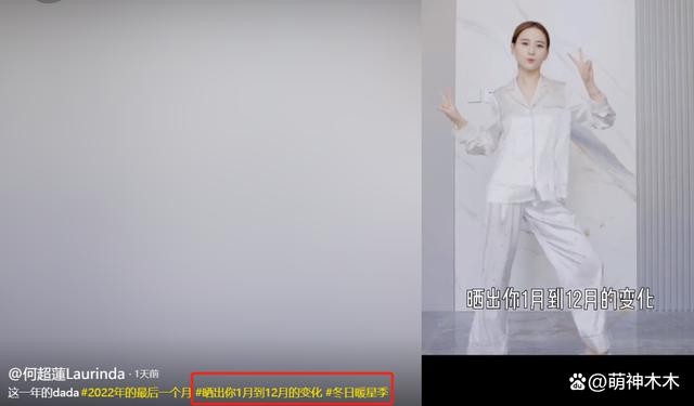何超莲不但没给窦骁 34 岁生日送祝福,还在男友 34 岁生日第二天更新了一条短视频,内容是 " 晒出你 1 月到 12 月的变化 ",整条视频完全看不到窦骁身影。