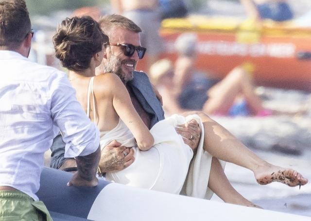 只见在游艇上,贝克汉姆把48岁爱妻维多利亚放在腿上,紧紧抱住,在儿女们、亲友们的面前大方秀恩爱,丝毫不避讳,快要奔五的维多利亚身材确实保持非常好,生活作息很自律,看到她冻龄般的容颜,不得不感叹时间过得真快,当年的辣妹组合20多年前的事了,但现在她依然还是容光焕发,身材火辣。