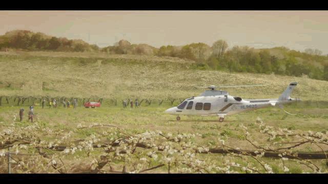 在一众村里大婶大爷的注视下,女主从直升机上一跃而下,走向了她的男孩。