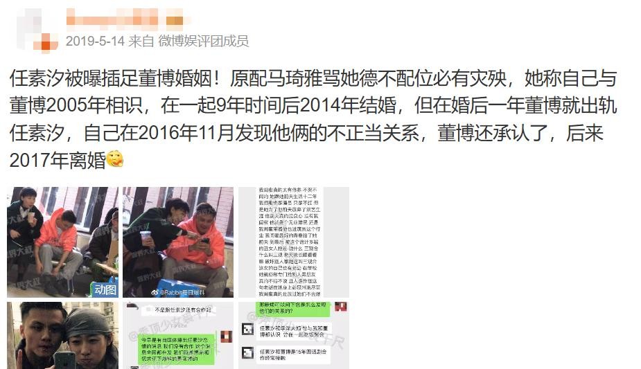 这三个人的闹剧还没有结束,董博的妻子也开始发文曾任素汐插足自己的婚姻。