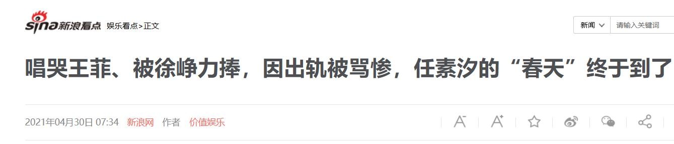信源3:新浪网 2021年04月30日 07:34 《唱哭王菲、被徐峥力捧,因出轨被骂惨,任素汐的“春天”终于到了》