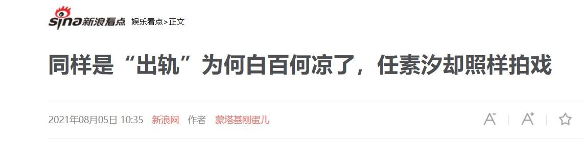 信源2:新浪网 2021年08月05日 10:35 《同样是“出轨”为何白百何凉了,任素汐却照样拍戏》