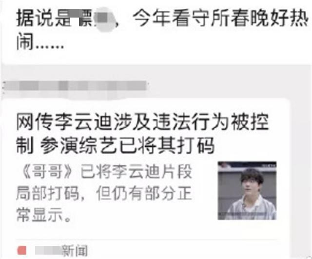 网友纷纷猜测警方通报的就是李云迪,年龄也一模一样。而且早些时候,便传出了李云迪涉黄被控制的消息。当时还有大V博主称李云迪是被吴某透露的消息,之后,李云迪参加的综艺节目《披荆斩棘的哥哥》也对李云迪出现的画面进行了打码。