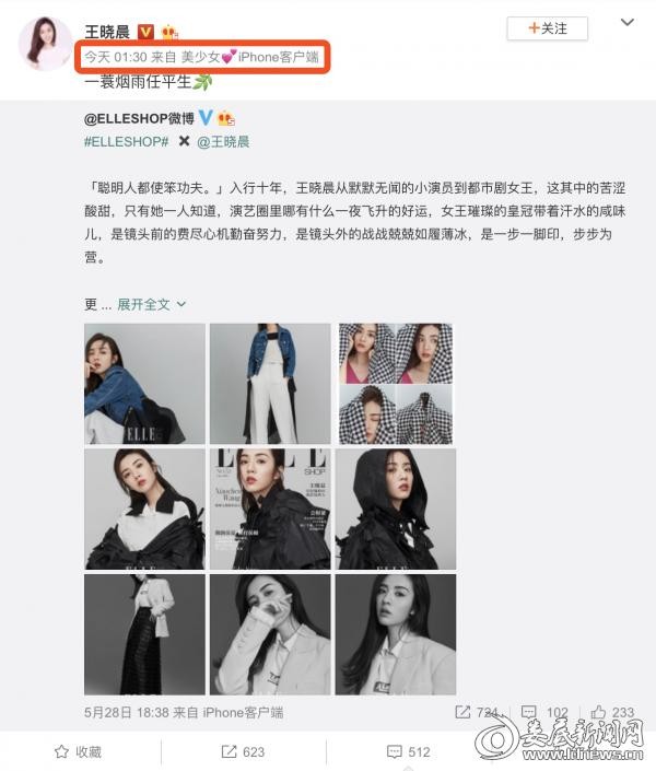 王晓晨微博分享最新时尚大片 粉丝却意外发现一个小秘密