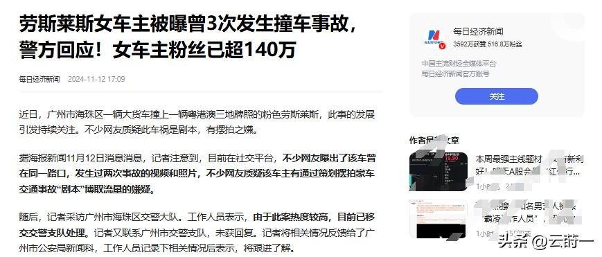 前段时间,那位粉色劳斯莱斯的车主朱女士,因为自己的车被大货车撞了,却淡定拍照,还称“不需要赔偿”吸粉无数。