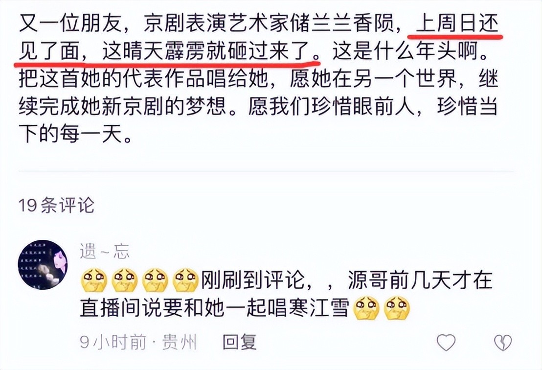 储兰兰去世的消息一下子在网络上炸开了锅,网友们都不敢相信这样一位年轻京剧演员的去世,纷纷去各种相关人士的评论区下面询问其具体情况。