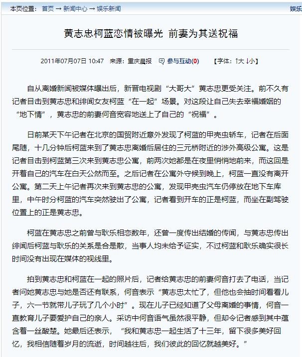 面对外界的猜测,何音选择相信自己的丈夫。然而,随着黄志忠和柯蓝的合作越来越多,两人的绯闻也愈演愈烈。2011年4月,网上爆出黄志忠抛弃家庭、另结新欢的消息。
