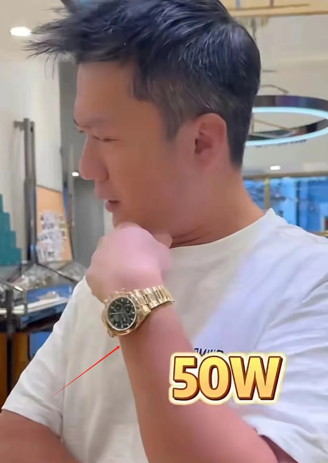 老公过生日,她也出手阔绰,送了一个金灿灿的劳力士手表,价值50万。