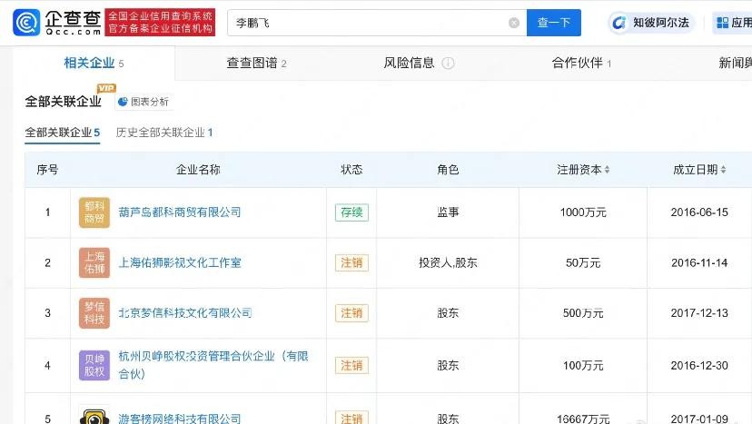 据企查查APP显示,MC天佑(李鹏飞)名下关联5家公司,其中4家已经注销,仅剩1家存续。这家存续的公司,李鹏飞持有40%的股份并担任监事。然而,这家公司的命运并不如MC天佑的直播事业那般顺风顺水。2021年,因被列入经营异常名录届满3年公告提醒后仍未履行相关义务,公司被列入严重违法企业名单。2022年,又因未按规定公示年报再次被列入经营异常名录。这些商业上的挫折,似乎预示着MC天佑的事业开始走向下坡路。