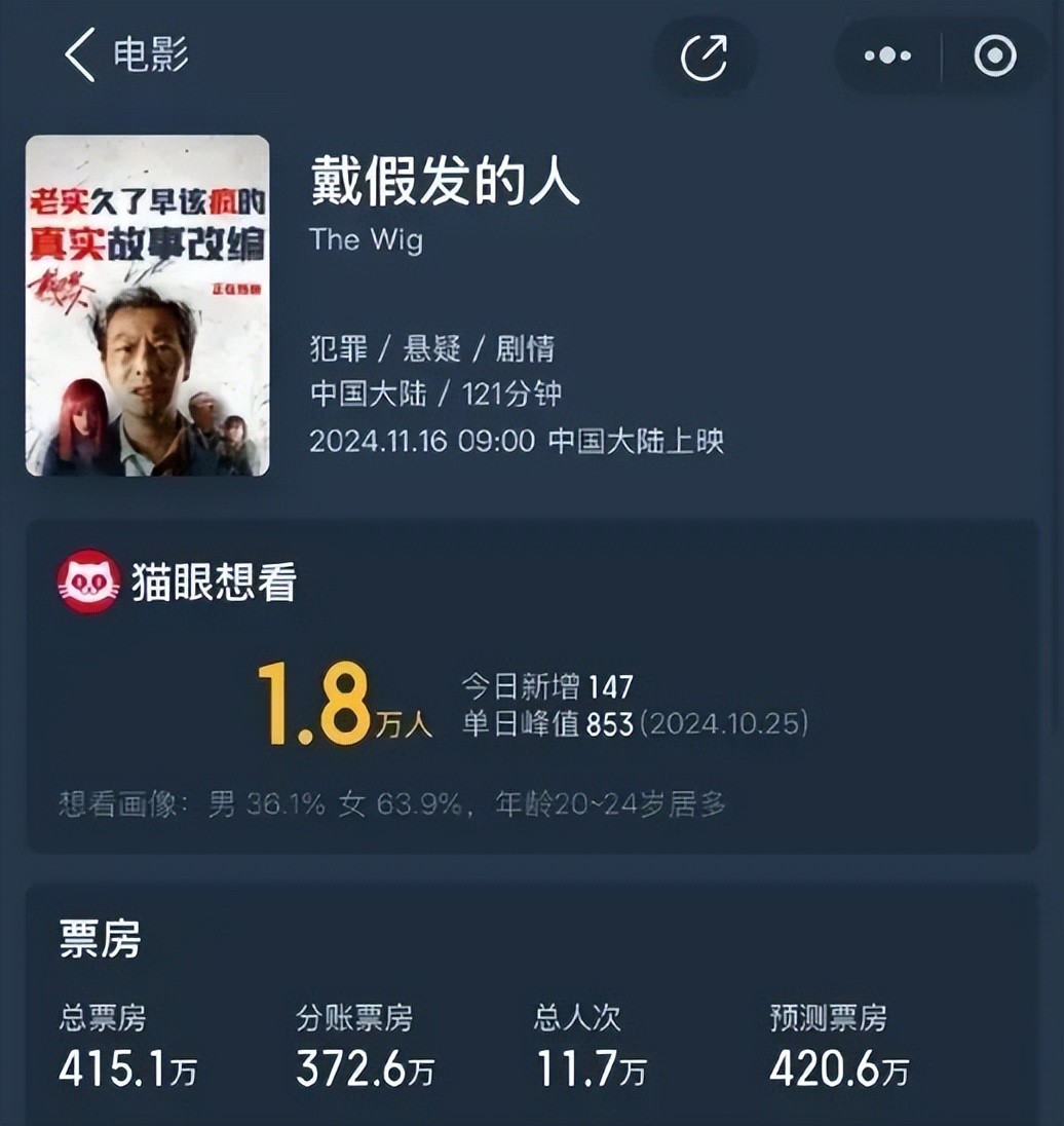 最近他新上了电影《戴假发的人》,上映后只卖了400万,整整赔了一个亿。
