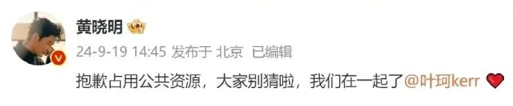 而且在今年的9月份,黄晓明还高调官宣了和叶珂的恋情。