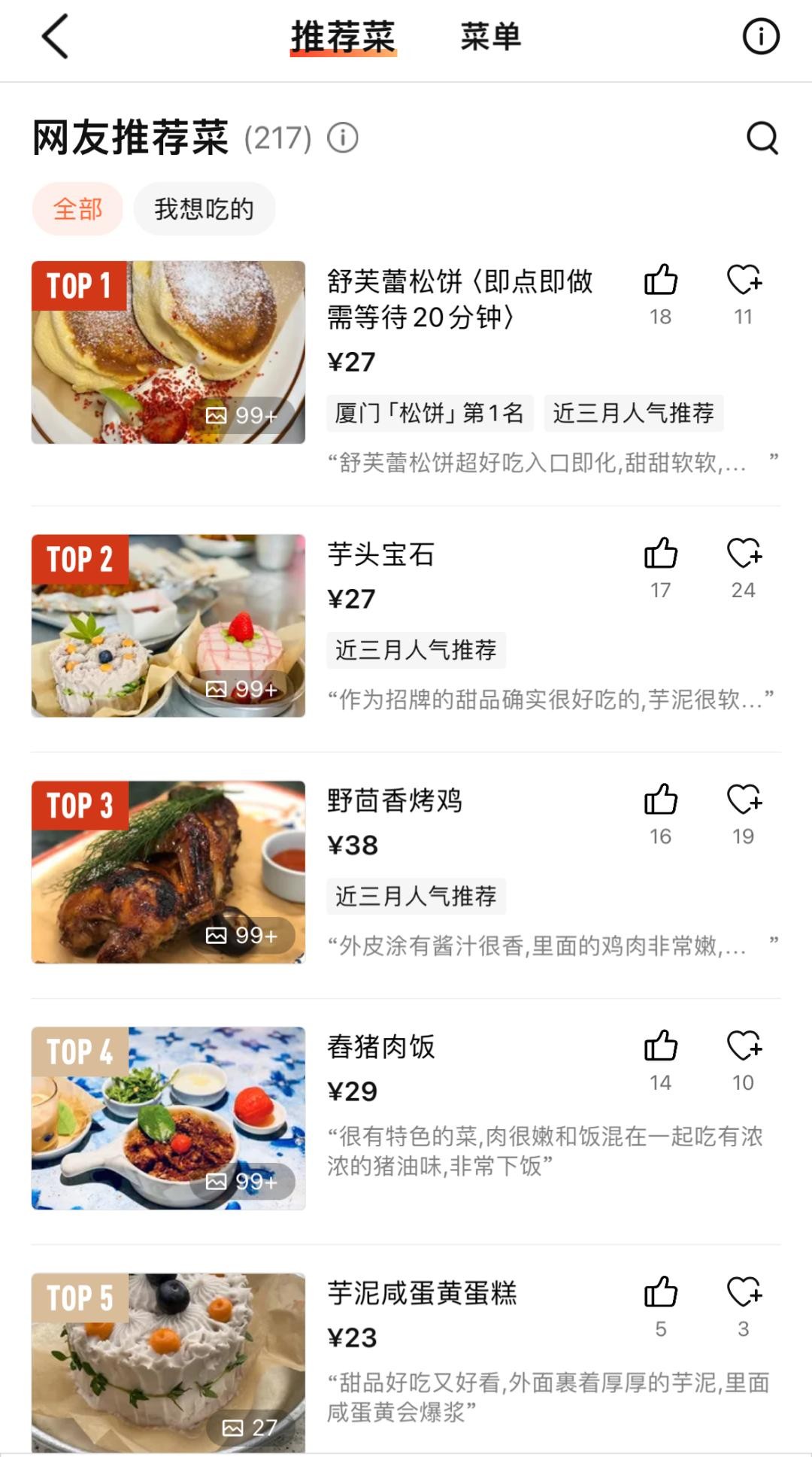 翻看“凉房”的热门推荐菜单