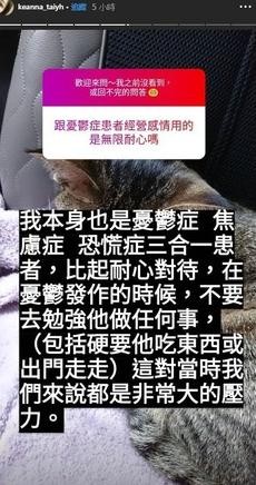 这6、7年来,谢和弦的病况时好时坏,2017年一度发出剪国旗的照片,事后坦言又是情绪问题:“每年7、8月会开始很躁,老婆、经纪人及朋友都有提醒我,要调整一下。”Keanna则会在身边扮演提醒角色,严厉告诉他“你伤到别人,不好笑”,适时把谢和弦从失控边缘拉回来。