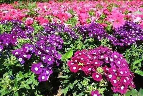 美女樱盛开时像色彩斑斓的花海,十分具有观赏价值