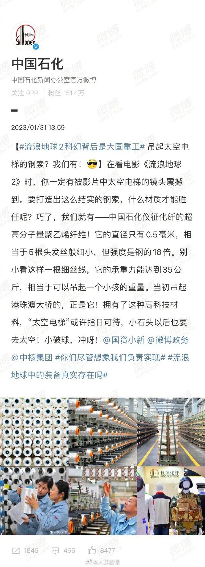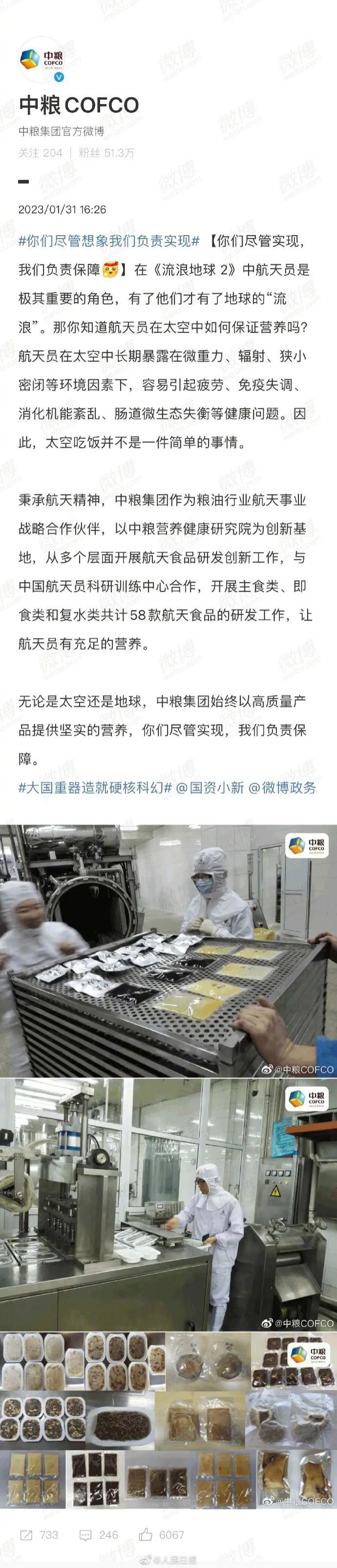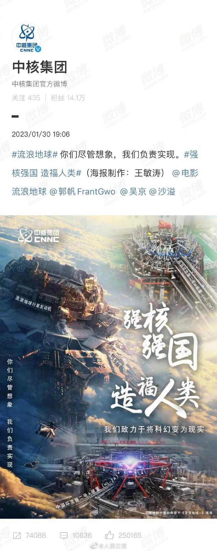 " 你们尽管想象,我们负责实现。" 继中核集团喊话电影《流浪地球 2》后,中国航天科技集团、中国建筑、中国石油、中国石化、中粮集团等国家队 " 团建式 " 前来报到。网友:整整齐齐的国家队排面,这联动太硬核了!