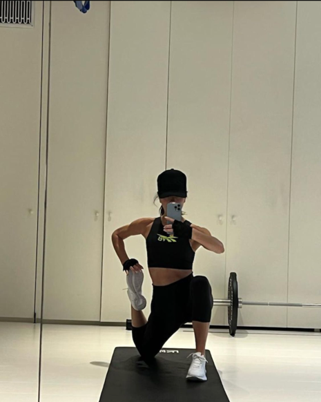 照片中,维多利亚身穿一身黑衣,运动背心搭配健身九分裤,将自己的身材曲线勾勒得淋漓尽致。脚踩白色运动鞋,扎着丸子头,皮肤偏咖色,光滑细腻毫无皱纹,并且小腹平坦,身材紧实。特别是在紧身裤的衬托下,维多利亚的小腿十分纤细匀称,很有美感。