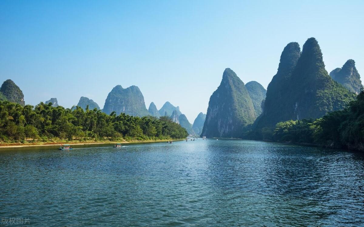 除了壮观的山峰,桂林兴坪漓江还以其清澈见底的碧绿江水而闻名。江水如镜,倒映着周围的山峰和村庄,仿佛进入了一个幻境。游船缓慢地穿行其中,你可以近距离欣赏到每一处细节,感受到大自然的宁静与神奇。