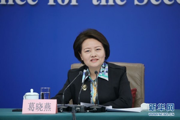 图说:十三届全国人大二次会议新闻中心于3月12日15时在梅地亚中心新闻发布厅举行记者会,邀请最高人民法院审判委员会副部级专职委员刘贵祥,福建省高级人民法院院长吴偕林,江西省高级人民法院院长葛晓燕就“攻坚‘基本解决执行难’”相关问题回答中外记者提问。图为葛晓燕回答记者提问。新华网/中国政府网 刘厦 摄