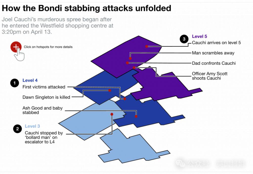 这起血腥暴力事件发生在悉尼东郊的 Westfield Bondi Junction 购物中心。