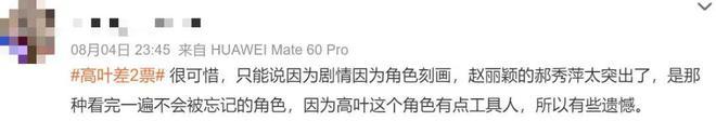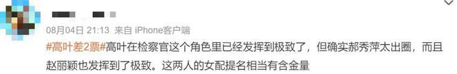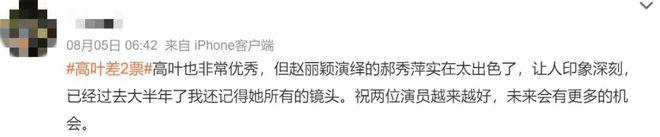 41 票 VS39 票,以 2 票的微弱优势险胜同剧组的高叶 (高叶在《第二十条》里饰演检察官吕玲玲)。