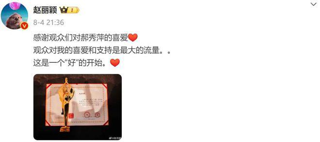 活动当天,赵丽颖因拍戏而未能到现场见证领奖。