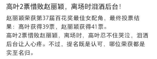 赵丽颖与高叶可谓不分伯仲,但有时候得奖也确实讲究综合分。