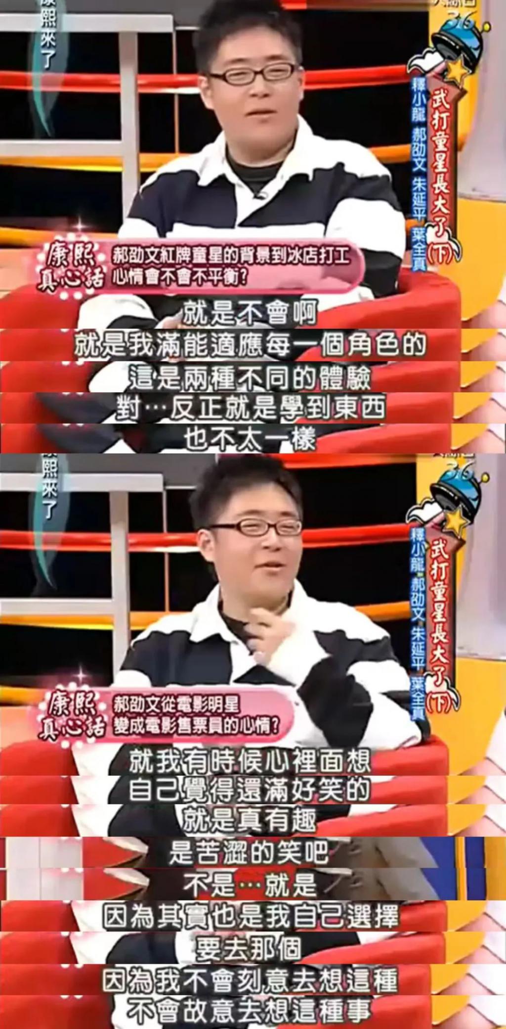 这对曾红极一时的童星而言,无疑是一场残酷的心理考验,但对于这种落差,郝劭文倒是能坦然接受。