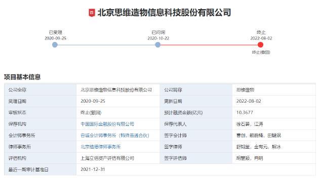 2020年9月,思维造物披露A股IPO招股书,拟募集10.37亿元。同年10月,北京证监局的文件显示,思维造物选择在科创板上市,随后又转战创业板。当时,思维造物一度被认为将成为“知识付费第一股”。