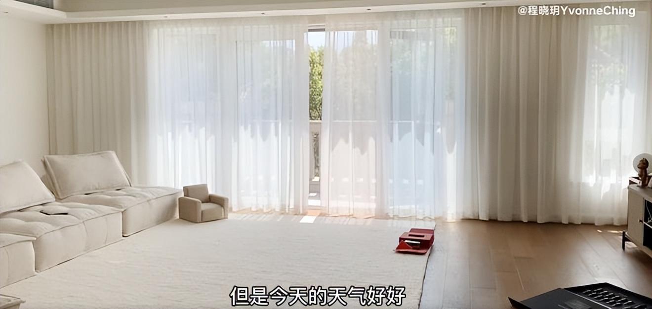 豪宅面积高达400平方米,因程晓玥独居,客厅内没有过多杂物而显得尤其空旷,看起来骑单车都不是问题。