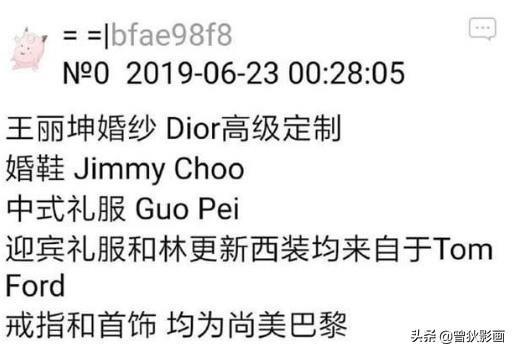 此前,有网友在八卦论坛爆料林更新和王丽坤即将举办婚礼,描述中提到王丽坤订制了某奢侈品牌的婚纱、婚鞋和中式礼服,林更新也订制了一套西装,同时二人还准备了迎宾礼服,相当详细。