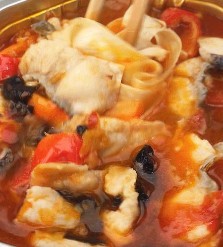 泡椒鱼:这款也是买成30多!鱼肉也可以做成冻干!太高大上! 鱼肉,木耳,宽粉,番茄超级丰盛,鱼肉很有嚼劲!棒棒哒