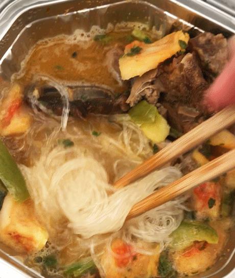 羊蝎子:这款买的30多,里面有三块巨大的羊蝎子!肉食动物最爱啊!而且这款里面的粉丝是细的,很入味!这款不能吃辣的也可以hold住喔~