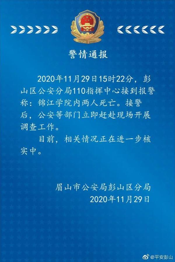 29日晚,四川省眉山市公安局彭山区分局发布通报称,警方已赶赴现场调查。