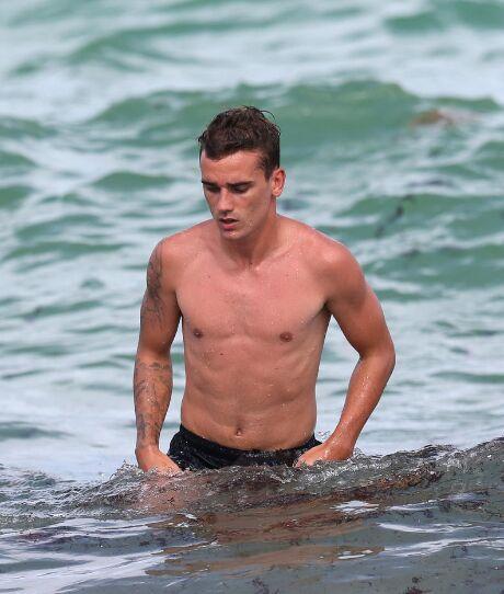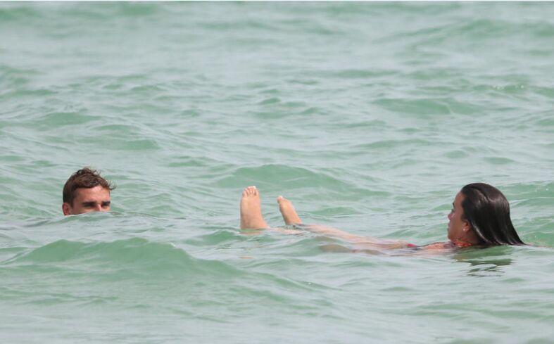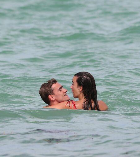 法国球星格列兹曼与女友度假 水中嬉戏花式秀恩爱