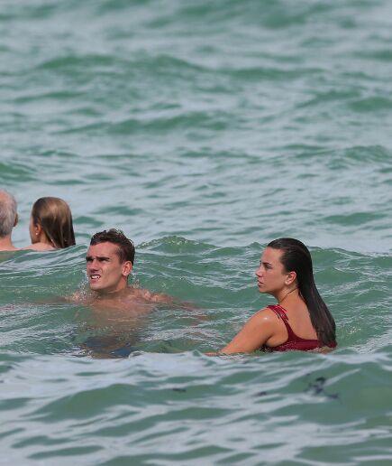 据报道,法国球星格列兹曼近日与女友在美国迈阿密度假,水中嬉戏花式秀恩爱。