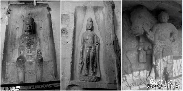 三县邑子造像碑,北魏正光四年(523)北地郡宜君、同官、土门三县邑子250人合造。碑高2.2米,宽0.95米,厚0.3米,首身座齐全,雕工精细,为药王山现存造像碑中最大最完整最精致的一通。
