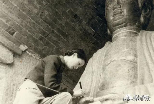 1937年6月,建筑大师梁思成、林徽因夫妇曾来到药王庙,对药王山隋唐以来的摩崖造像做了测绘,留下了林徽因在药王山摩崖造像西边体量最大的那座圆雕坐佛之上做测绘记录时的照片,十分珍贵。