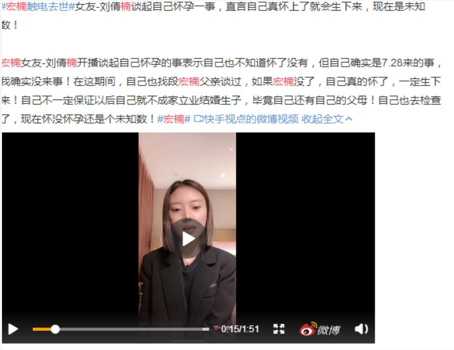 这里还要说到他的女友,在宏楠去世之后,也进行了直播,在直播中谈到自己怀孕的事情,表情平淡的说自己有没有怀孕也不知道,还声称和宏楠的父亲已经谈过了,如果真的怀孕了,还会生下来。