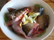 1.梭鱼去鳞,内脏,洗净。