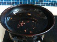 4.热锅下油,先放入花椒粒小火煸香。