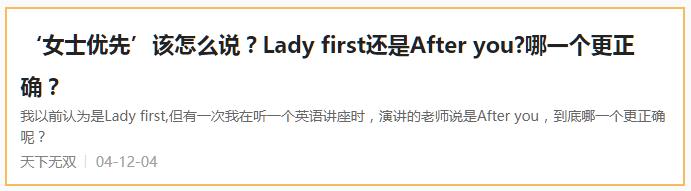 lady first 啥意思?在英语里常用吗?大家又犯错了!