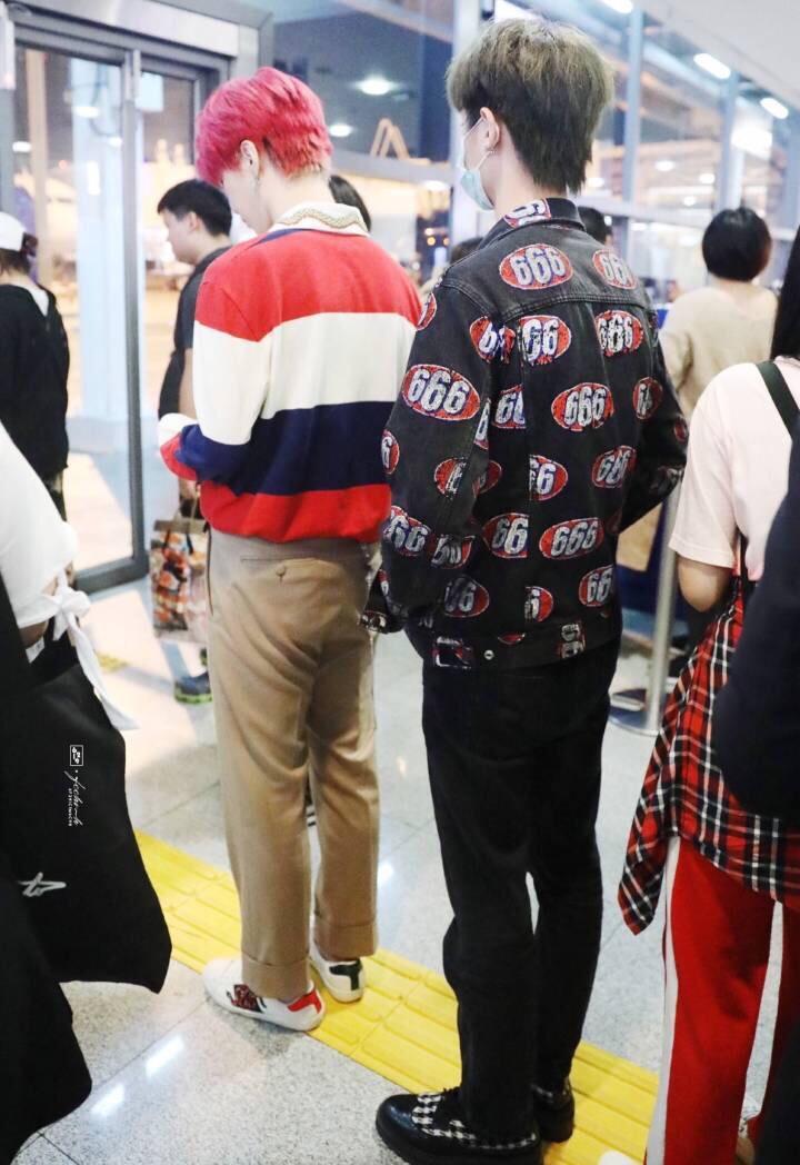 近日,范丞丞Justin朱正廷等乐华七子来到泰国拍摄广告,ninepercent其他成员蔡徐坤陈立农等七人先在北京汇合。今天,范丞丞和justin现身泰国机场准备和nineperent其他成员合体。