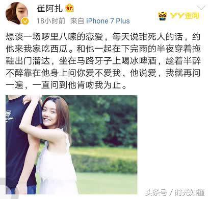 崔阿扎公布恋情,发微博晒与男朋友的合影!