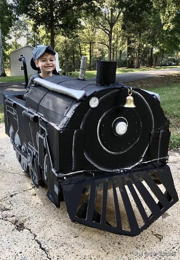 【6】最后的这个小火车司机,看起来没什么特别。其实仔细观察火车轮就会发现,原来这个火车模型是在小男孩的轮椅上巧妙搭建的。身患小儿麻痹症的孩子因为这个创意的造型,也可以和其他孩子一起快乐过节了。看他笑的多开心啊!